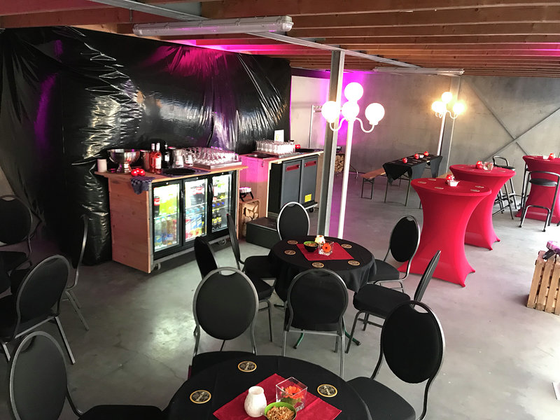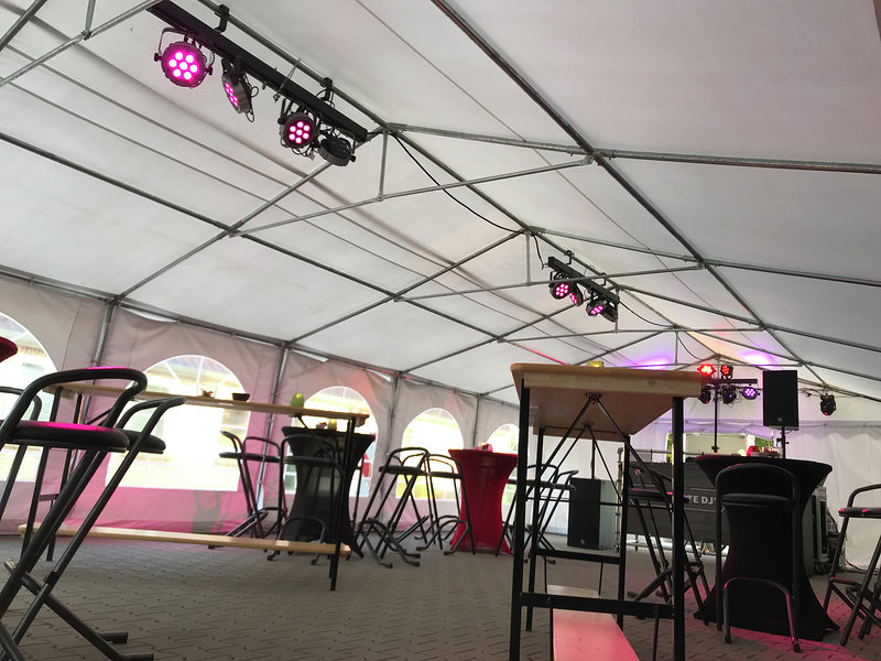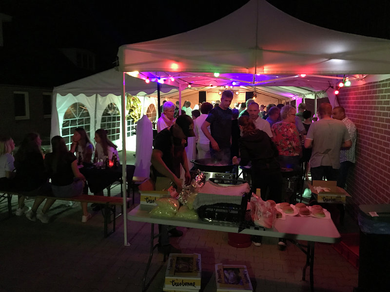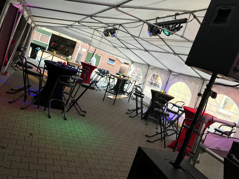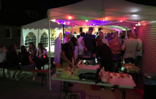 9 juni was het feest in Laag Zuthem! Roelofs Party Service begeleide en organiseerde hier een Abraham Feest. We hadden de beschikking van een garage met daarvoor een feesttent, die in een paar uur tijd omgebouwd werd tot ware feestzaal. We zorgden hier voor de complete inrichting, hapjes en drankjes en als afsluiting broodjes beenham/hamburger.