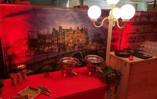Dit jaar hebben wij het bouwvakfeest voor Lingbeek Bestratingen & Hoveniers mogen verzorgen. Er is gekozen om Amsterdam naar Heino te halen, en zo hebben wij een echt Amsterdams Café gerealiseerd in de loods. Aan alles was gedacht, van Amsterdamse barkrukken tot een heerlijk koud Heineken biertje. Met bijpassend meubilair en decoratie werd het een erg gezellige middag.