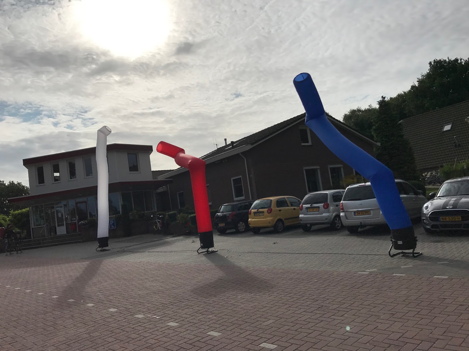 Roelofs Party Service plaatste bij Camping Heino de Start/Finish boog en een drietal SkyTubes voor de 20e Pomptoertocht tijdens de Pompdagen. Een groot spektakel met diverse oude Brommers, Motoren, Solexen, Auto’s, Trekkers etc.