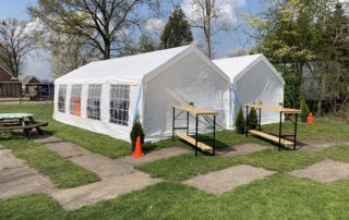 Zondag 14 april verzorgden wij voor een vrijwilligersmiddag de inrichting en tent in Lemelerveld. Op een mooie locatie bouwden wij een tent van 8 x 8 meter waar voor ruim 60 personen genoeg ruimte was om gezellig het glas te heffen en een goed gesprek te voeren. De materialen voor deze klus komen natuurlijk uit eigen assortiment, en kunnen naar wens op vele manieren worden ingezet. De foto’s spreken voor zich.